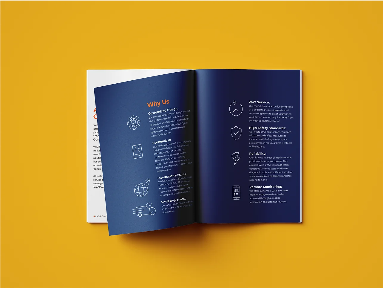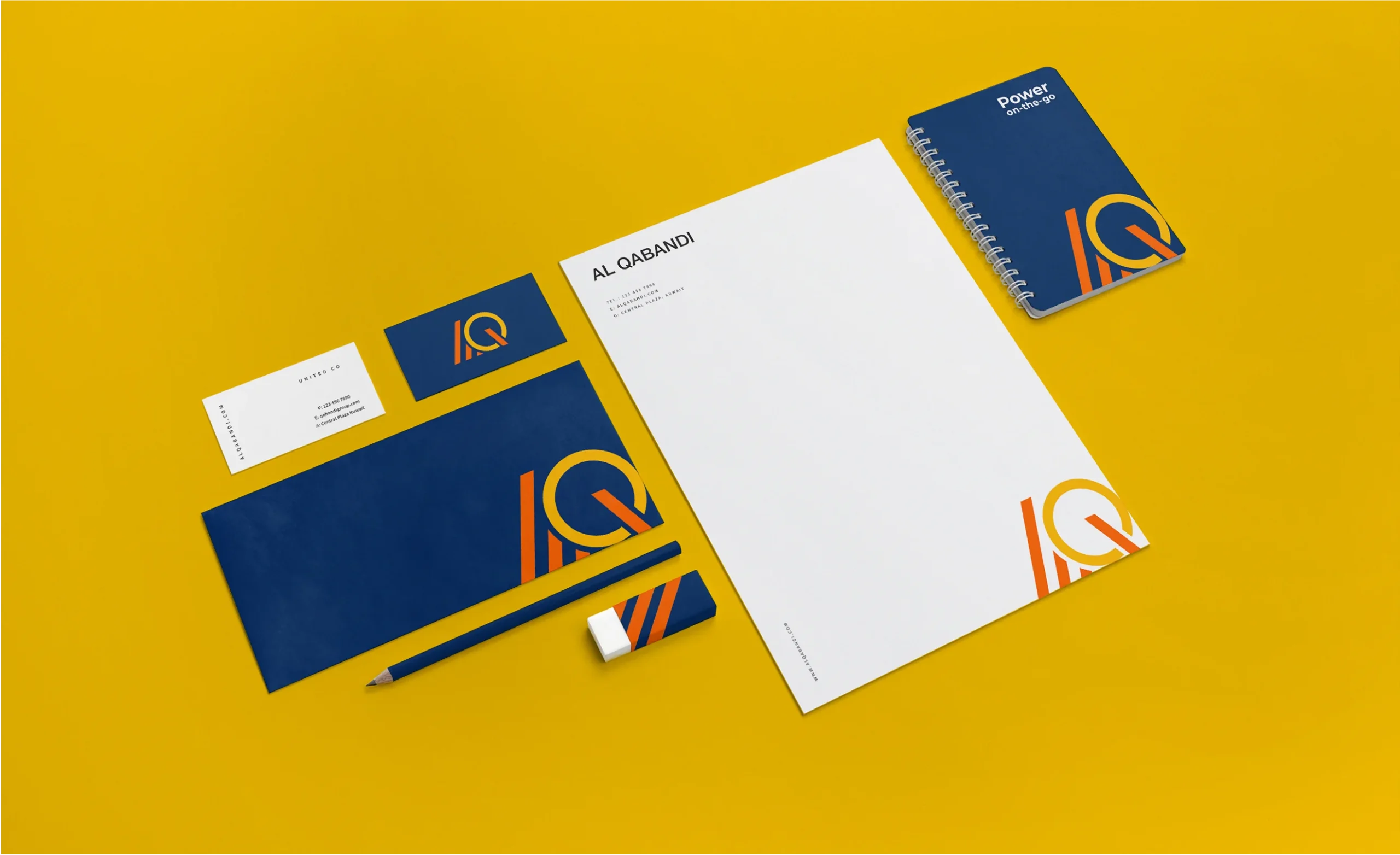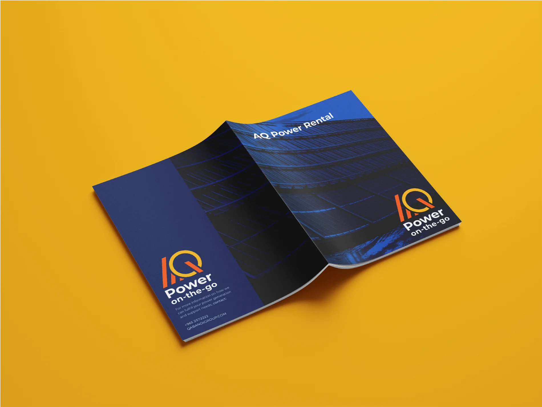 Drawing inspiration from the world of power and electricity, we incorporated a dynamic color palette of vibrant blues, lively yellows, and energetic oranges. Alongside this, we redesigned their power generators, ensuring every element of their brand—from marketing collaterals to physical assets—exudes a cohesive, cutting-edge identity. The result is a rebrand that positions AI Qabandi as a true pioneer, reinforcing its bold, confident presence in the leasing sector.