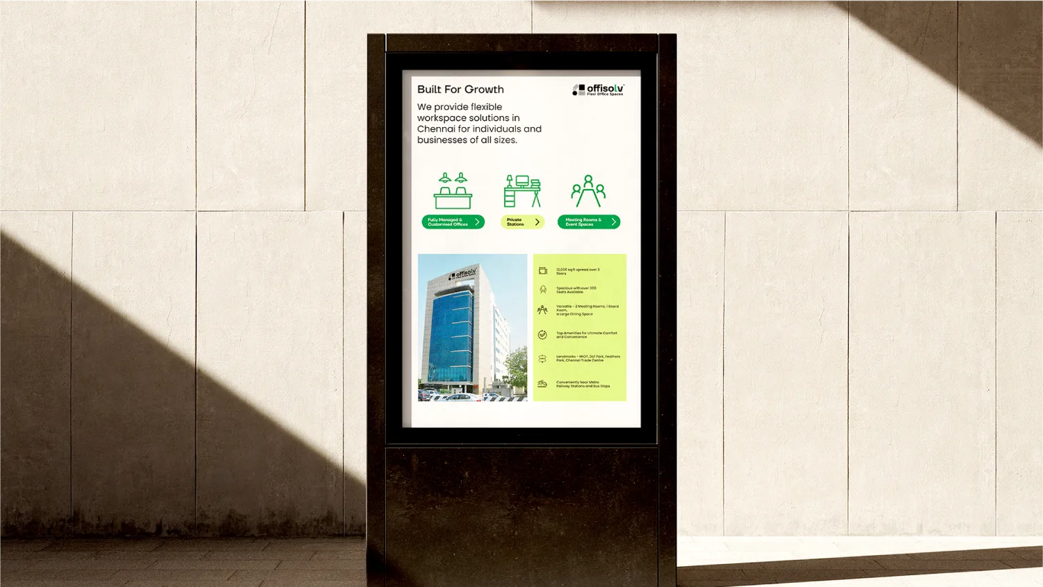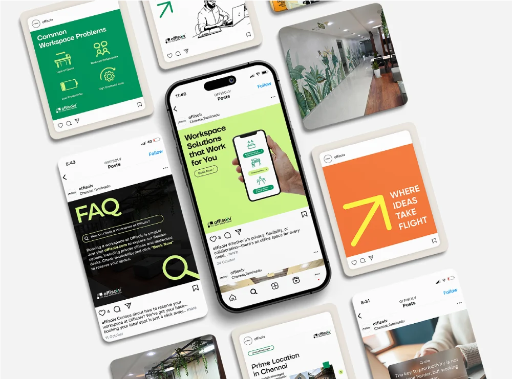 We also launched their presence on social media, creating a digital voice that matches their physical spaces: smart, streamlined, and future-facing. With a series of informative, design-forward posts, Offisolv now engages their audience with relevance and consistency. Across every touchpoint, the brand speaks with cohesion, helping them stand out in a saturated coworking landscape.