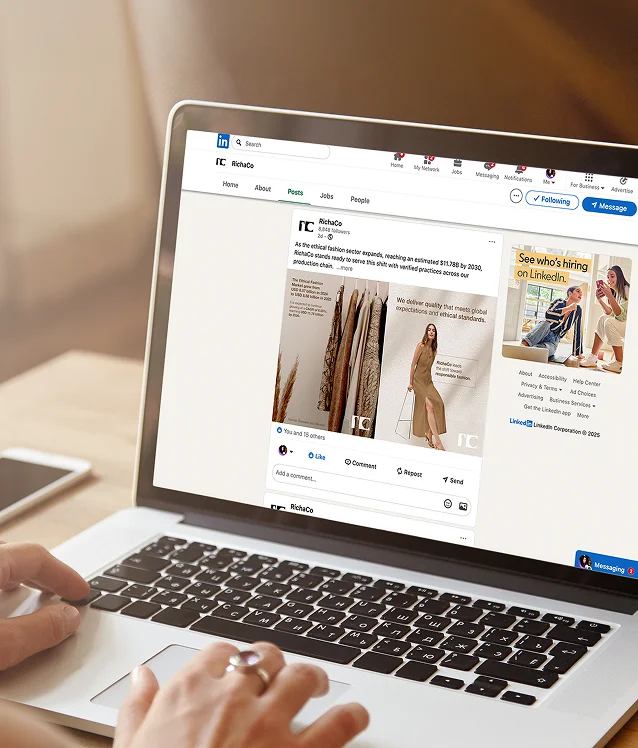 RichaCo, one of India’s largest garment exporters, had scale and expertise but their digital presence didn’t fully communicate it. We stepped in to execute a LinkedIn strategy that highlights their leadership in apparel manufacturing.