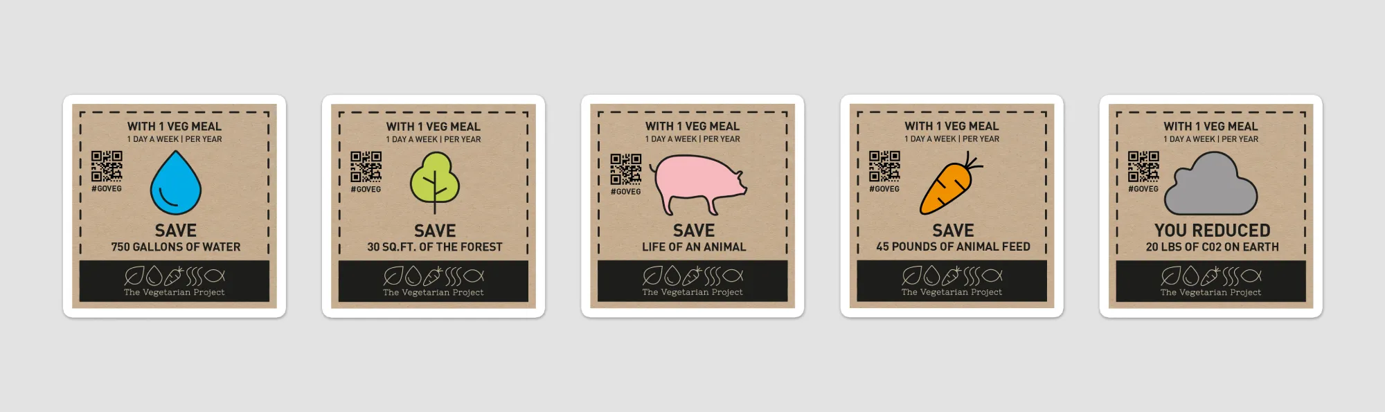 Our work extended to creating custom stickers that featured QR codes, placed on vegetarian products in stores to further amplify the project’s mission. These simple yet powerful touchpoints helped engage consumers directly, furthering The Veg Project’s goal to encourage eco-conscious choices.